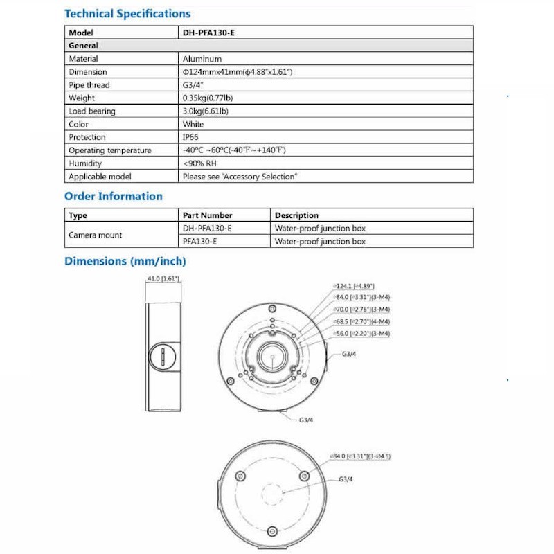 Dahua box Giunzione ip66 Per Telecamera Diametro 12,3CM