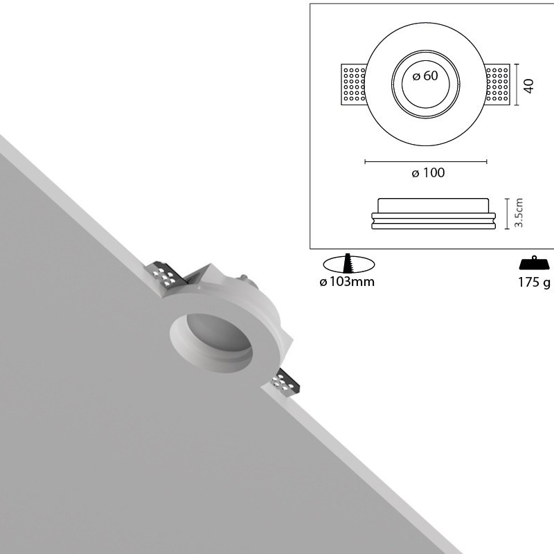 Portafaretto Da Incasso In Gesso d.100mm Rotondo Per Lampada GU10 015 TULIP