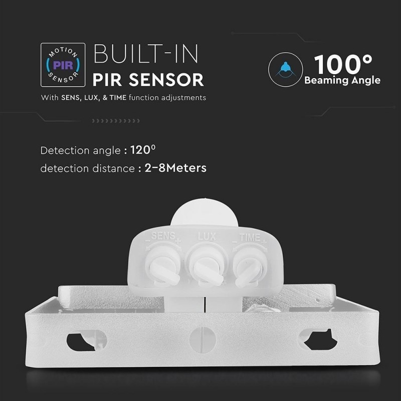V-TAC PRO Faro LED Chip Samsung 30W con Sensore di Movimento e Crepuscolare e Interruttore Manuale di Bloccaggio Colore Bianco
