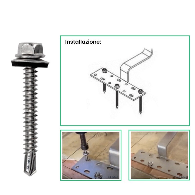 V-TAC Viti M6 50mm con Guarnizione per Fissaggio Pannelli Solari 30 Pezzi