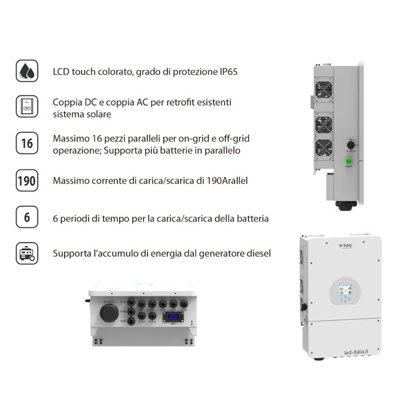 V-TAC Inverter Ibrido Monofase LV Deye 8kW WiFi senza CEI 0-21 Bianco IP65