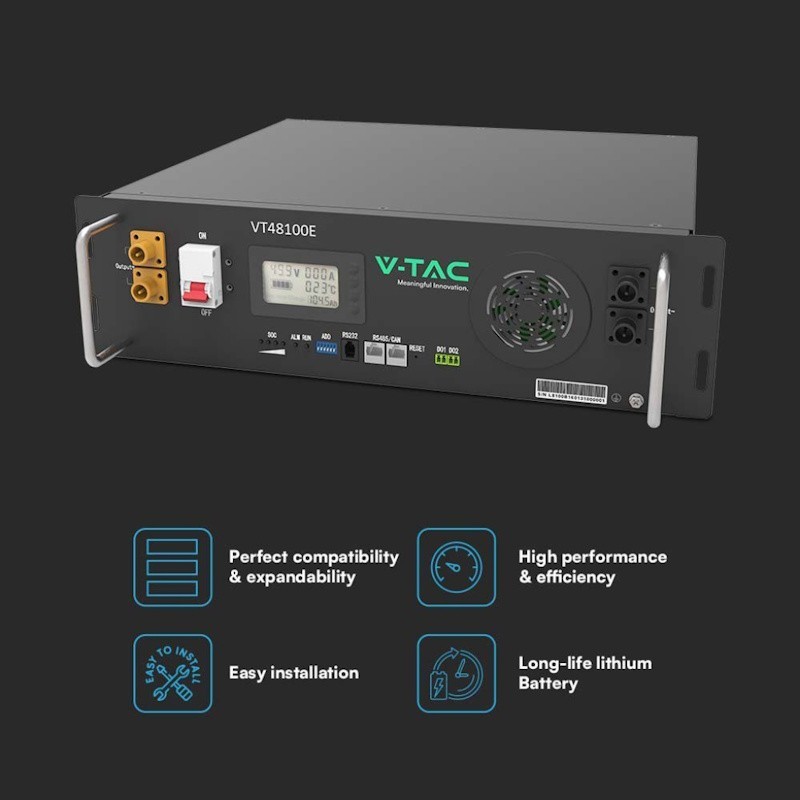 V-TAC Batteria Accumulo Rack LV 5.12kWh LFP 51.2V 100Ah 100A BMS Nera CEI 0-21