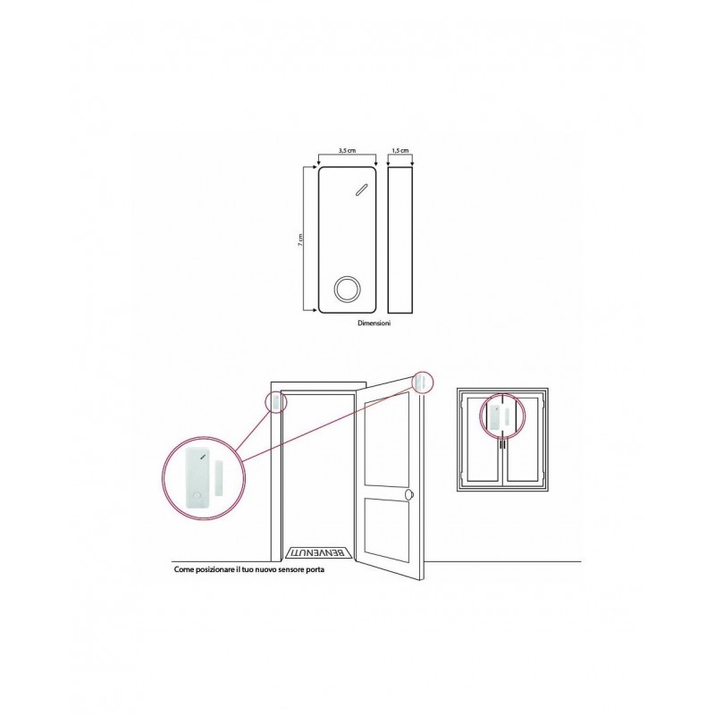 I sensori magnetici sono sensori intelligenti che permettono alla centrale di riconoscere lo stato della porta o della finestre e cioè se questa è aperta o chiusa avvisando l'utente.Questo sensore wireless funziona con frequenza di 433 Mhz.