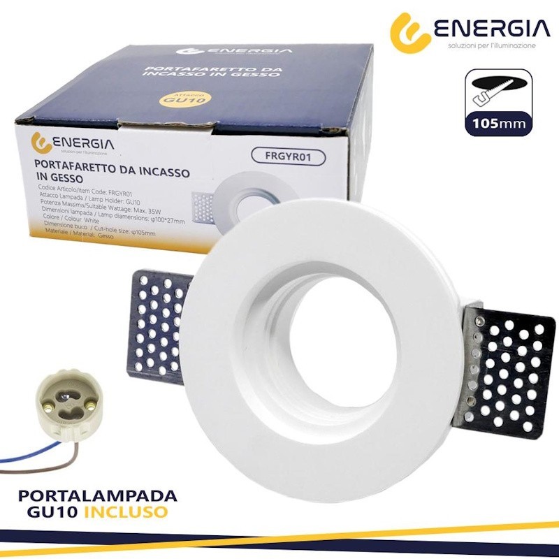 Portafaretto In Gesso d.100mm Rotondo GU10 Inclusa ART. 42/TA