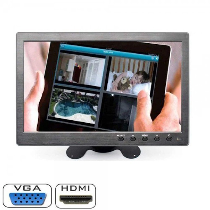 Nuovissimo Monitor TFT/LCD HD 10.1" portatile per videosorveglianza ma anche per auto e per collegarlo ad una telecamera retromarcia. Il monitor ha 2 ingressi Video. La confezione comprende telecomando, alimentatore ed il piedistallo per il monitor e un cavo di collegamento VGA.