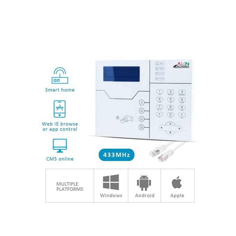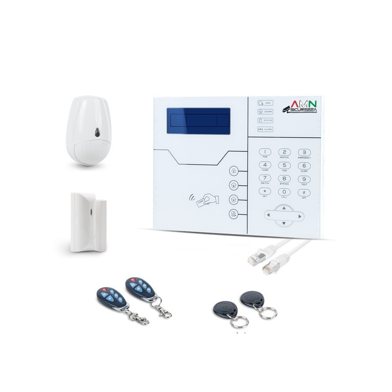 Centrale amn boss 8/32, dall'altissima eleganza, possibilita' di associargli fino a 32 sensori wi-fi con frequenza 868mhz, 16 interruttori wi-fi (per gestire la domotica della casa), 8 sensori cablati. potete anch evitare di inserire la sim. questa centrale ha incluso l'ingresso lan; tutto gestibile anche da app! gli ingressi cablati li potete programmare a vostro piacimento, menu' a guida vocale in italiano.