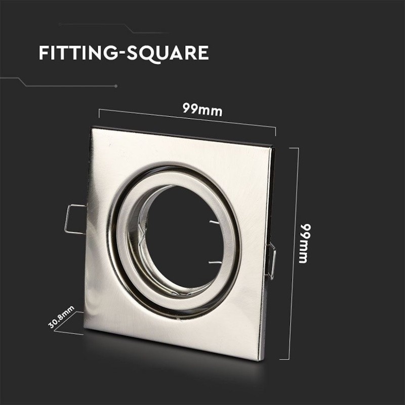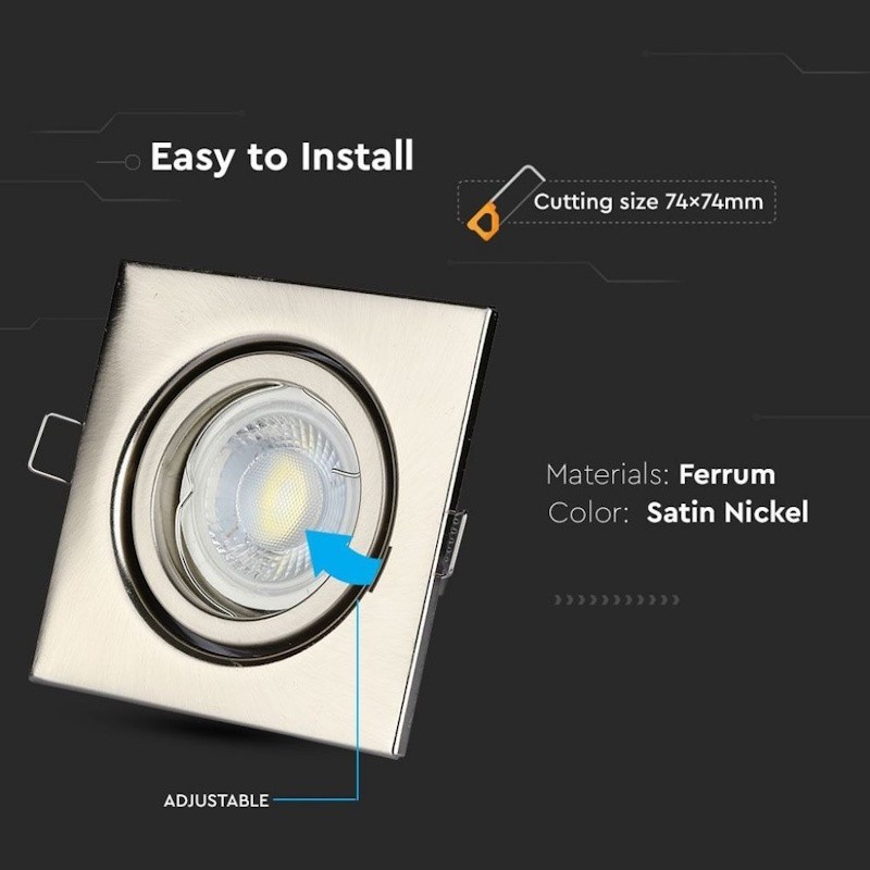 V-TAC Portafaretto LED da Incasso Quadrato GU10 e GU5.3 (MR16) Colore Nichel Satinato Orientabile.