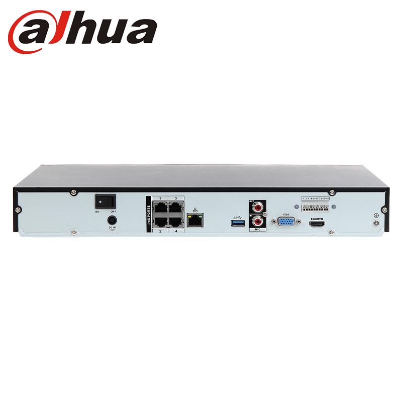 Nvr Dahua 4 canali Ip fino a 8mpx modello NVR4204-P-4KS2, la tecnologia di compressione video è la h.265, con una banda massima fino a 200Mbps. Possiede due uscite video: HDMI/VGA, 1 ingresso, 1 uscita audio, 4 ingressi e 2 uscite di allarme.