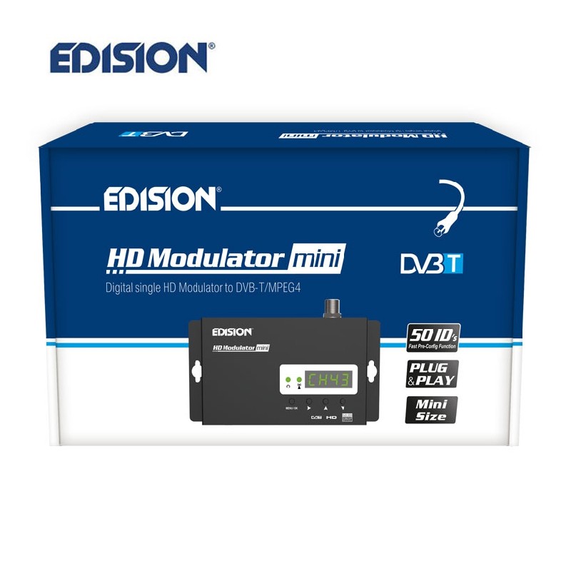 Modulatore digitale a canale singolo ad alta definizione, in formato mini. Con ingresso da qualsiasi sorgente HDMI (decoder terrestri e satellitari, telecamere, DVD, DVR, ecc.), Modula e produce output fino a 1080p MPEG4 ad alta definizione, segnale DVB-T digitale terrestre, nelle bande VHF / UHF.