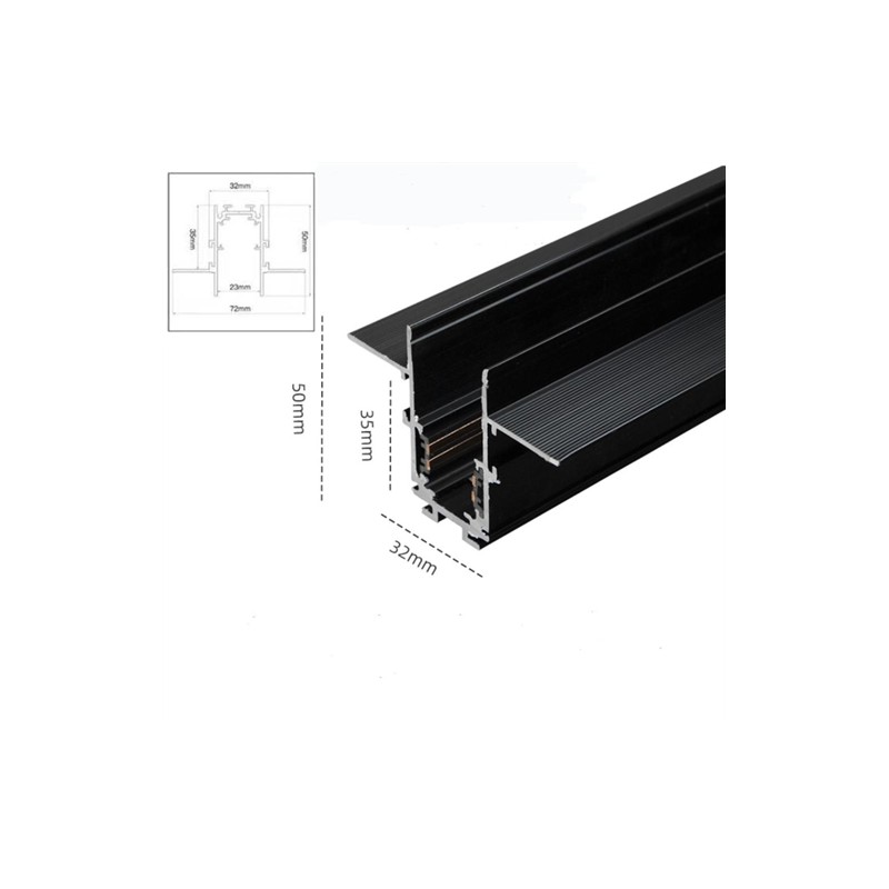 Binario magnetico da 48v 2 metri ad incasso a scomparsa e a bassa tensione modello BIN-INC-2M, il suo design ad incasso permette di occupare uno spazio compatto e ridotto, rendendo gli spazi puliti ed eleganti.