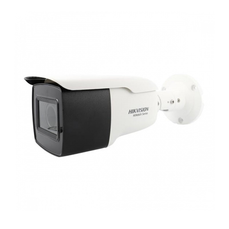 Telecamera bullet della serie Hiwatch di Hikvision, codice modello HWT-B350-Z, dotata della più recente tecnologia ibrida 4IN1: HDCVI, HDTVI, AHD e CVBS (960H). La risoluzione straordinaria da 5 Megapixel cattura dettagli nitidi, mentre l'ottica motorizzata offre un ampio angolo di visione da 95.7° a 29.1°.