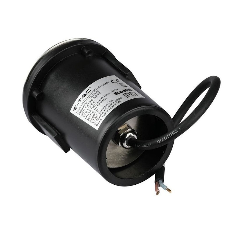 Portalampada da Interramento Calpestabile Rotondo MR16 (Max 20W) Colore Nero e Acciaio con 2 Fasci di Luce IP65 Sku 8568