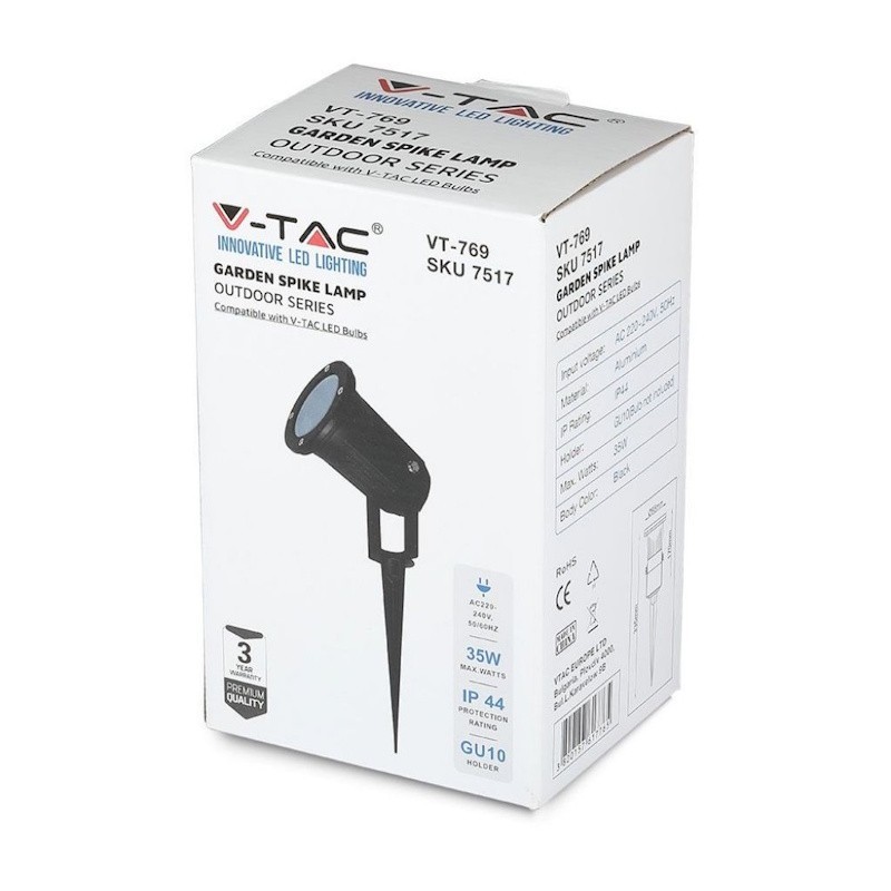 V-TAC Picchetto con Portalampada GU10 (Max 35W) Orientabile Colore Nero IP44 Sku 7517