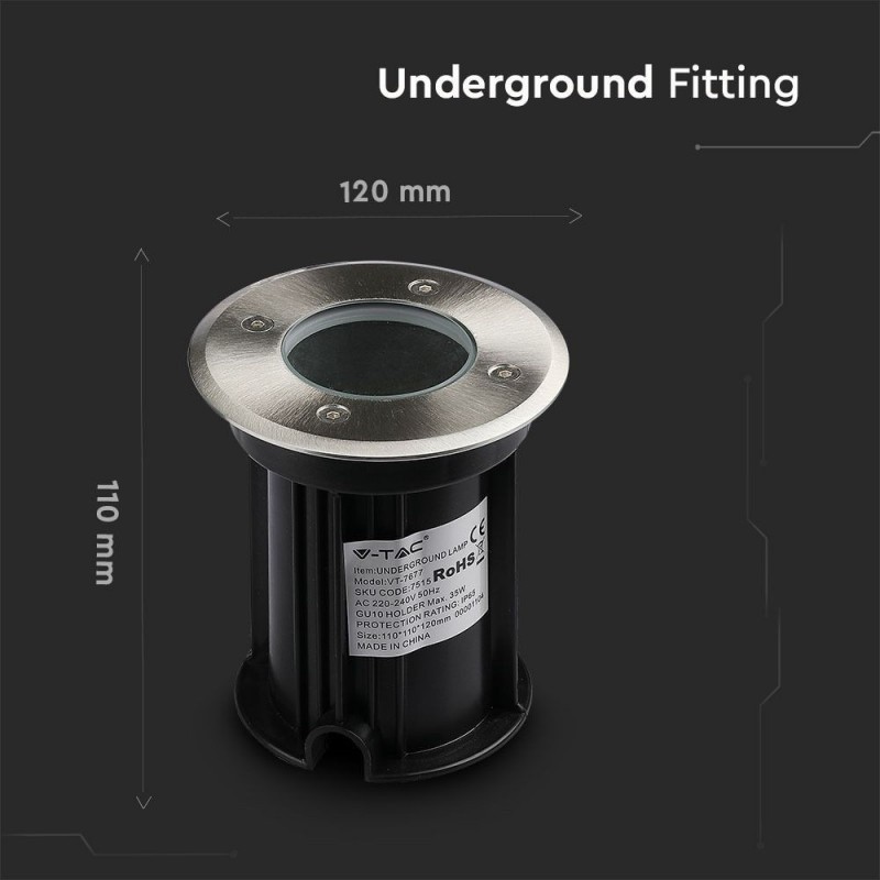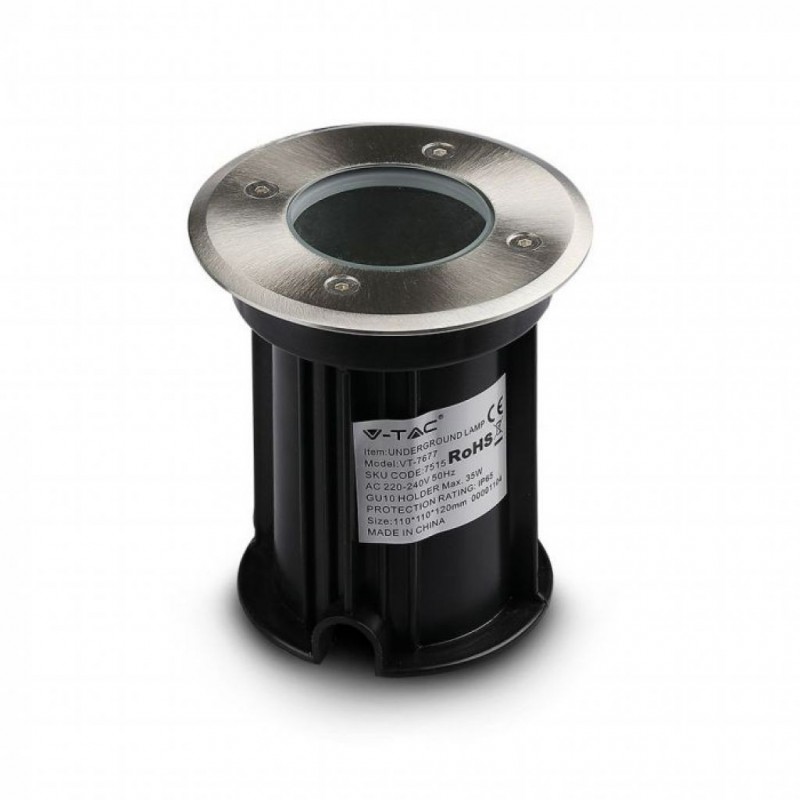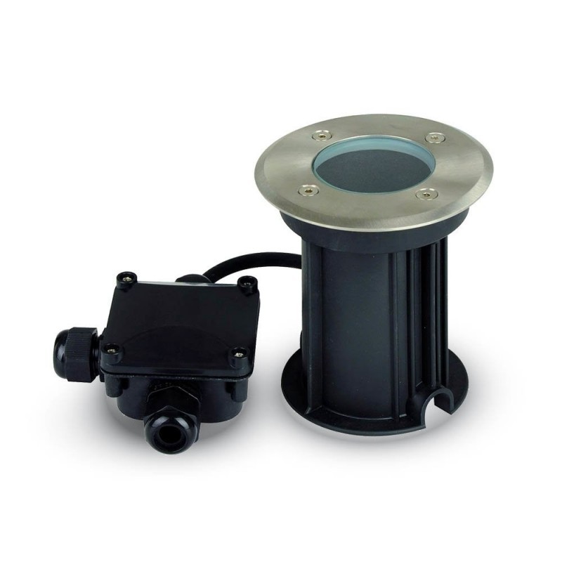 V-TAC Portalampada da Interramento Calpestabile Rotondo GU10 (Max 35W) Colore Nero e Acciaio IP65 Sku 7515