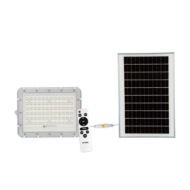 V-TAC Faro LED Solare 15W Telecomando Batteria Sostituibile Cavo 3m Bianco 6400K IP65