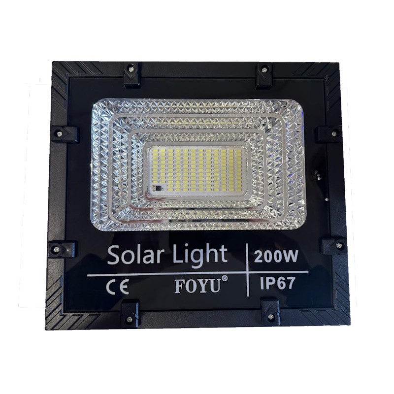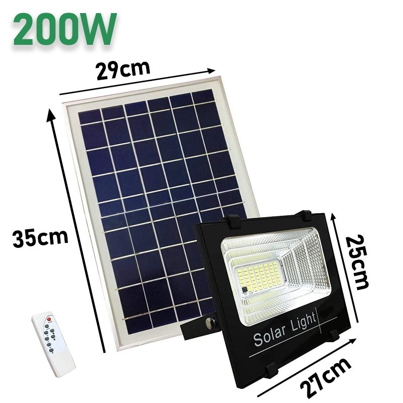 Faro solare LED da 200w provvisto di pannello solare e con sensore crepuscolare per l'accensione automatica quando cala il buio. Ideale per gli ambienti esterni, con un raggio di illuminazione ampio, provvisto di telecomando. Durata batteria (dichiarata) se completamente carico: 12-24 ore.