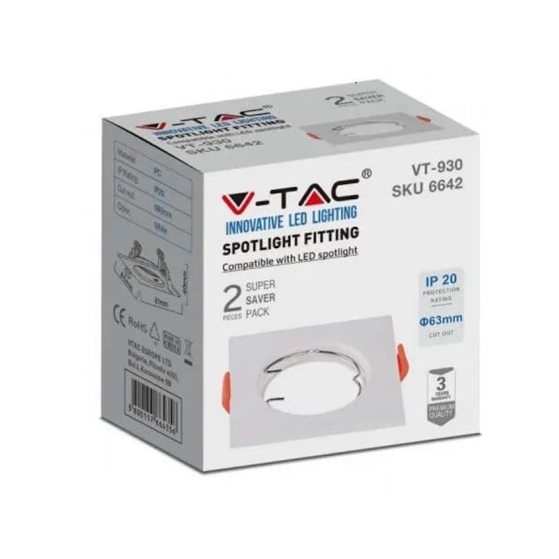 V-TAC Portafaretto Led da Incasso Quadrato GU10 Colore Bianco (Box 2 Pezzi)