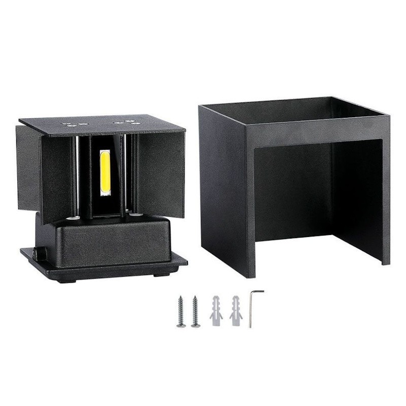 V-TAC Lampada LED da Muro Quadrata Doppio LED COB 11W Colore Nero Satinato Fascio Luminoso Regolabile 3000K IP65