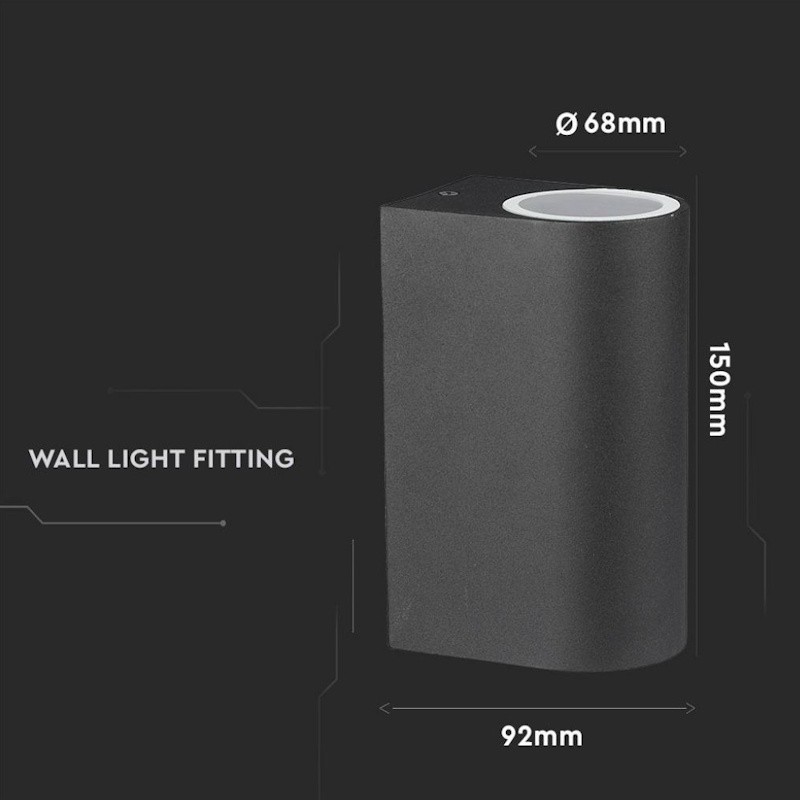V-TAC Portafaretto LED Doppio da Muro 2*GU10 e GU5.3 (MR16) Arrotondato in Alluminio Colore Nero IP44