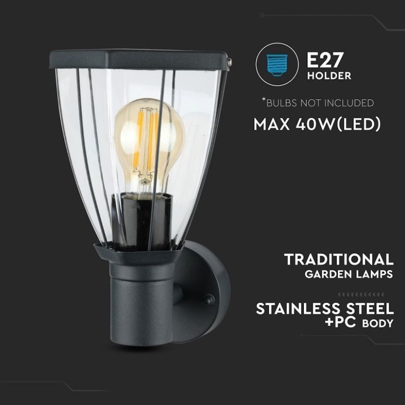V-TAC Lampada LED da Giardino con Portalampada E27 (max 40W) in Acciaio Inossidabile Colore Nero IP44 Sku 8628