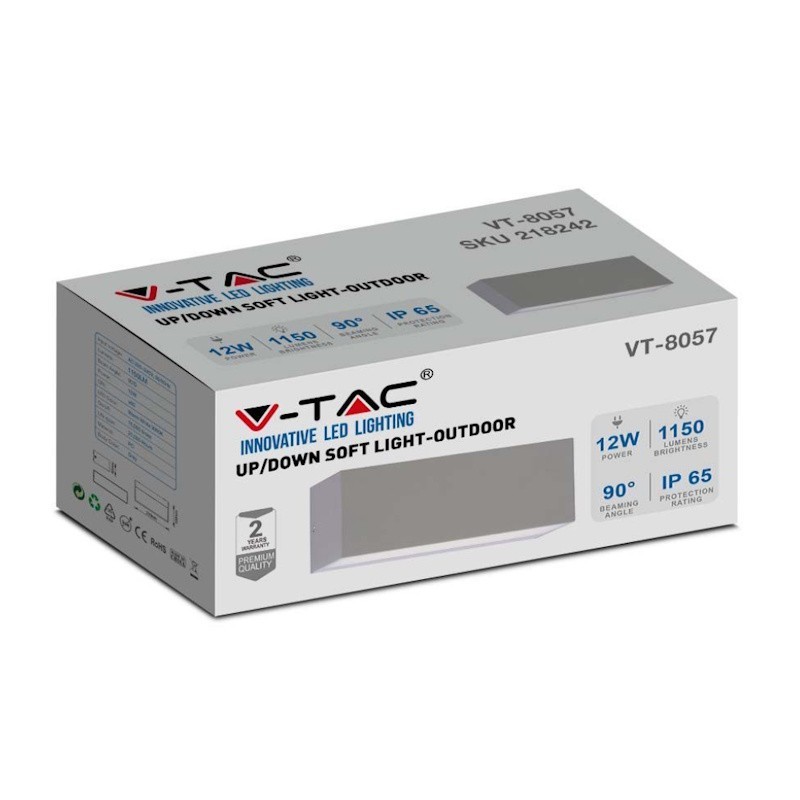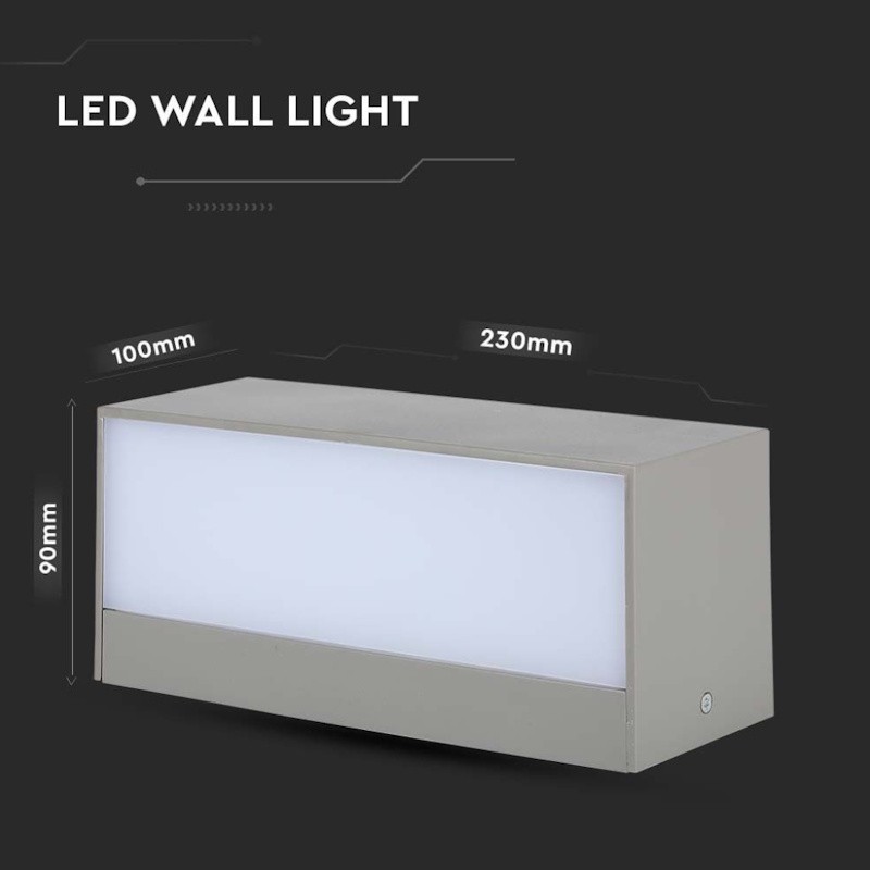 V-TAC Lampada LED da Muro Rettangolare 12W Doppio Fascio Luminoso Colore Grigio 6400K IP65 Sku 218244