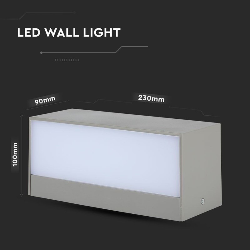 V-TAC Lampada LED da Muro Rettangolare 12W Doppio Fascio Luminoso Colore Grigio 6400K IP65 Sku 8244