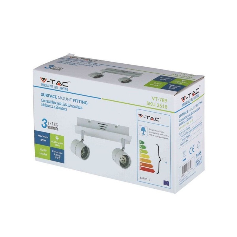 V-TAC Portafaretto LED Doppio da Incasso 2*GU10 e GU5.3 (MR16) Colore Bianco Orientabile