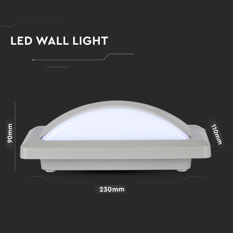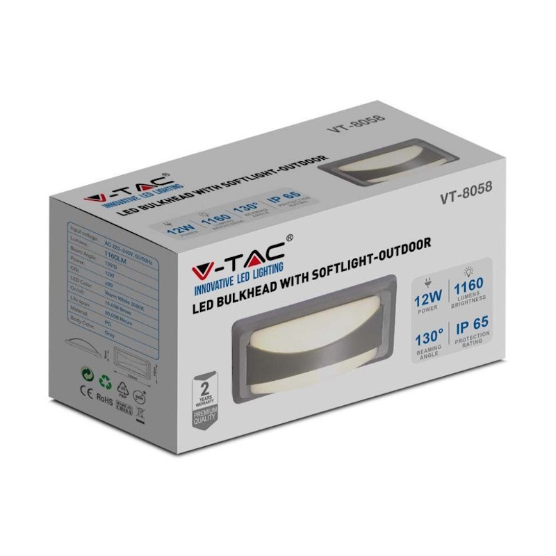 V-TAC Lampada LED da Muro Rettangolare 12W Colore Grigio 4000K IP65 Sku 218246