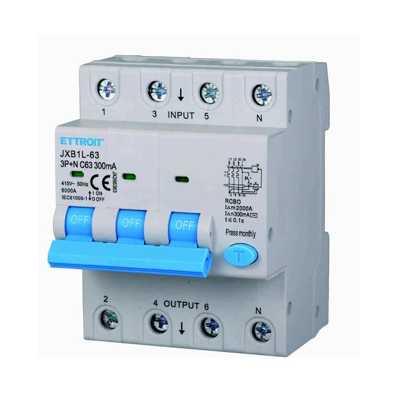 Interruttore magnetotermico Differenziale 3P+N 4 Moduli 63AH 380v 300MA 6KA JX266363