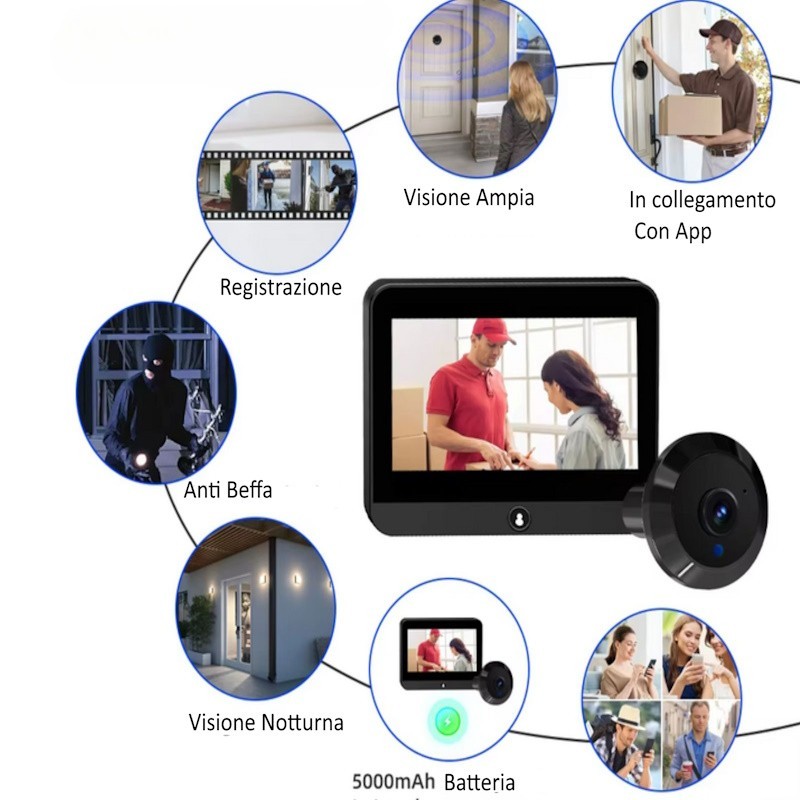 Spioncino Per Porta Wireless App Tuya con Slot Per Scheda Sd schermo LCD 2.4" Ricaricabile