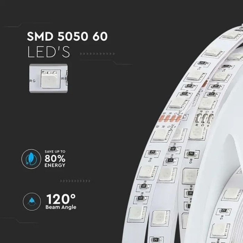 V-TAC Strip LED SMD5050 7W/m 10m 60 LED/m 24V RGB IP20 10mm sku 212592